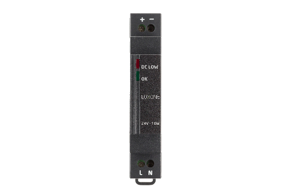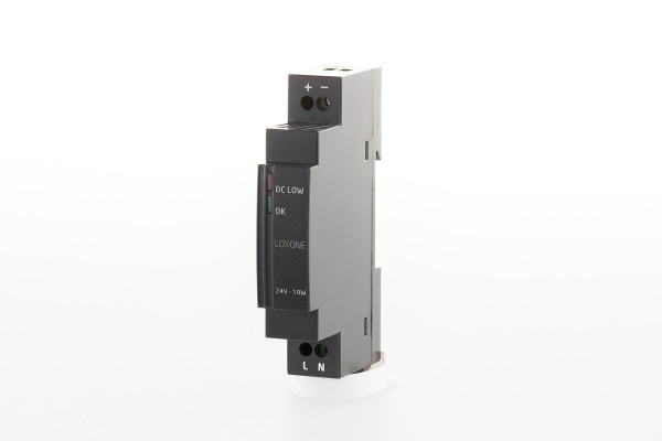 Neben einer Tiefe von nur 56 mm zeichnet sich das Loxone Netzteil von TDK durch eine einfache Integration in flache Schalt- und Sicherungsschränke aus. Das Hutschienen Netzteil liefert 24V Gleichspannung für die optimale Versorgung der Loxone Steuerungen. Die maximale Ausgangsleistung des Netzteils beträgt 0,4A und eignet sich für z.B. zum Anschluss des Loxone Minservers und einer 1-Wire Extension.